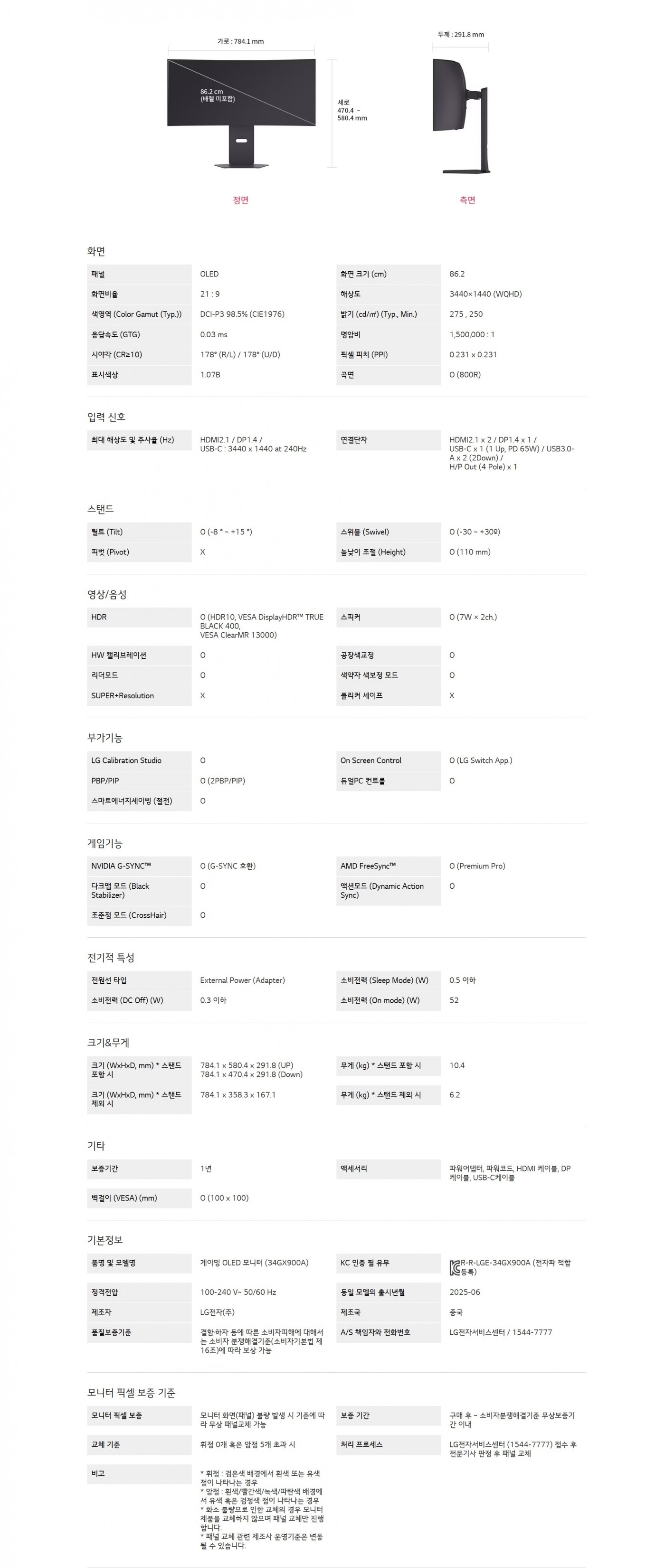 올레드 디스플레이눈이 편안한 게이밍모니터800R 곡면 WQHD 디스플레이최대 240Hz 고주사율 및 최고 0.03ms대(GtG) 응답속도